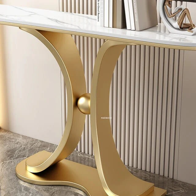 Art Console Table, Entrance Accent Table Gold Metal Base 120cm.