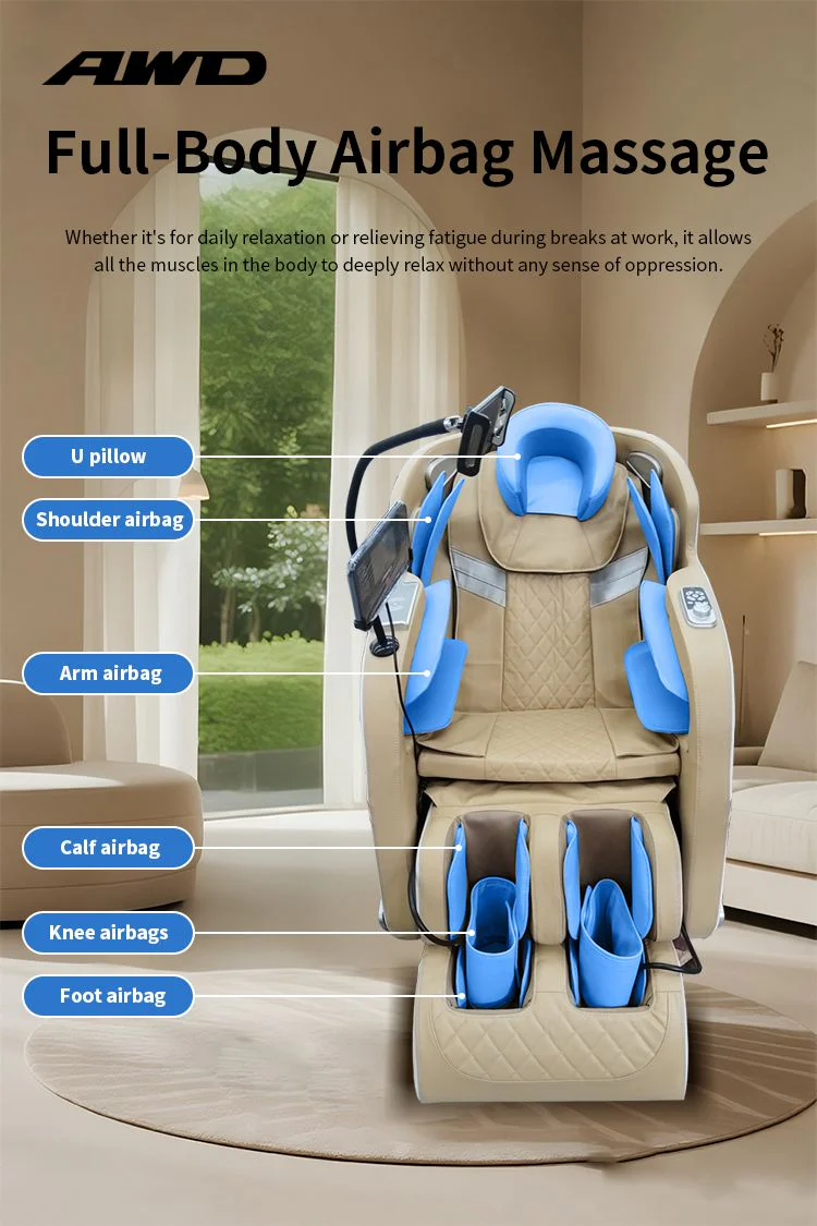 - Full Body Airbag Massage (shoulders, arms, waist, hips, calves, feet)