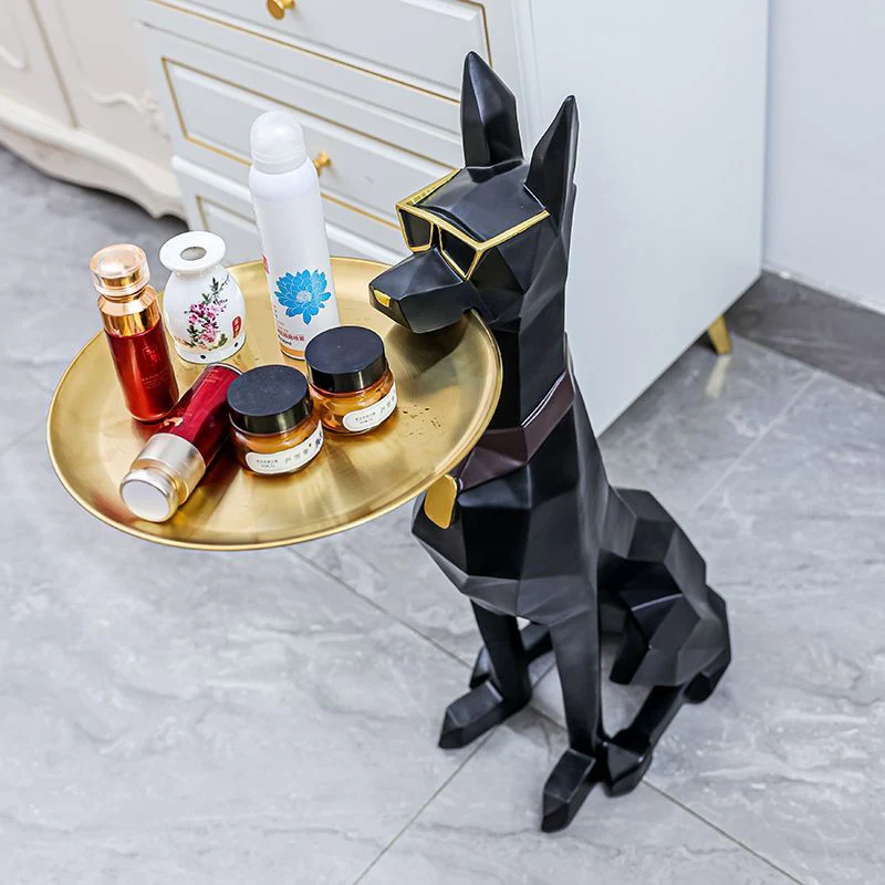 This modern and stylish dog statue combines natural inspiration and chic elegance, Could be used as coffee table or as statue décor, Designed to match any room or decoration. This home modern sculpture is the perfect home décor accessory to accent any corner, entryway or table in your living room, bedroom, and office. It can be used as sculpture, and it can also be used as living room coffee table or bedside table.