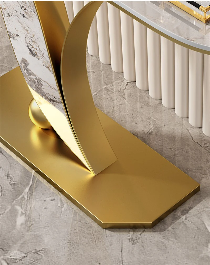 Enhance your home décor and make it more attractive and stylish with this amazing modern console table which consist of marble top and nice design of iron metal frame legs comes in shiny gold, multi-usage and multi-function.