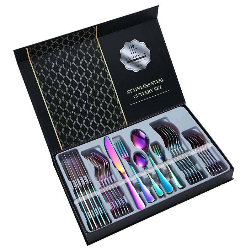 Luxury Camping Portable Colorful Stainless Steel Besteck 30 Pcs Flatware Gift Box Packaging Cutlery Set.
