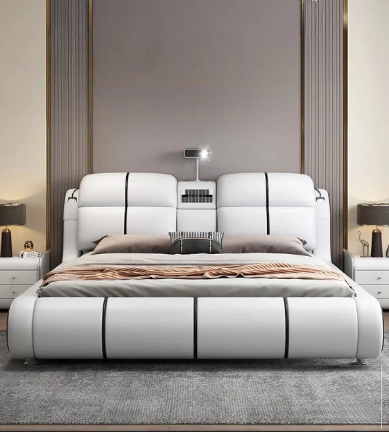 Transform your bedroom into a haven of comfort, entertainment, and relaxation with this smart king size bed which redefine the traditional beds by integrating technology features and luxurious design.